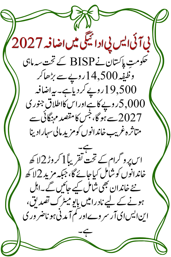 | New Payment Amount | BISP Payment Increased to Rs. 19,500 (Quarterly) |