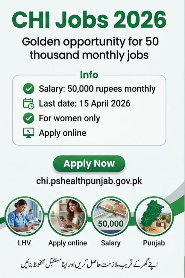 The Government of Punjab has officially opened a massive career gateway for women by announcing the Maryam Nawaz Community Health Inspector (CHI) positions under the Punjab Family Planning Program. This prestigious recruitment drive offers a handsome monthly salary of Rs. 50,000 and the unique benefit of working within your own union council or nearby local area. If you are a nursing professional, LHV, or a midwife looking for a stable government position with direct financial benefits, this is your golden opportunity to serve your community while securing your future. The application portal is now active, but with the April 15 deadline fast approaching, you must act quickly to ensure your documentation is submitted correctly. This initiative by Chief Minister Maryam Nawaz Sharif aims to strengthen the provincial health infrastructure by empowering skilled women with high-paying jobs and professional growth. Don’t let this chance slip away—your path to a rewarding 50,000 PKR monthly salary starts with a single online application today.