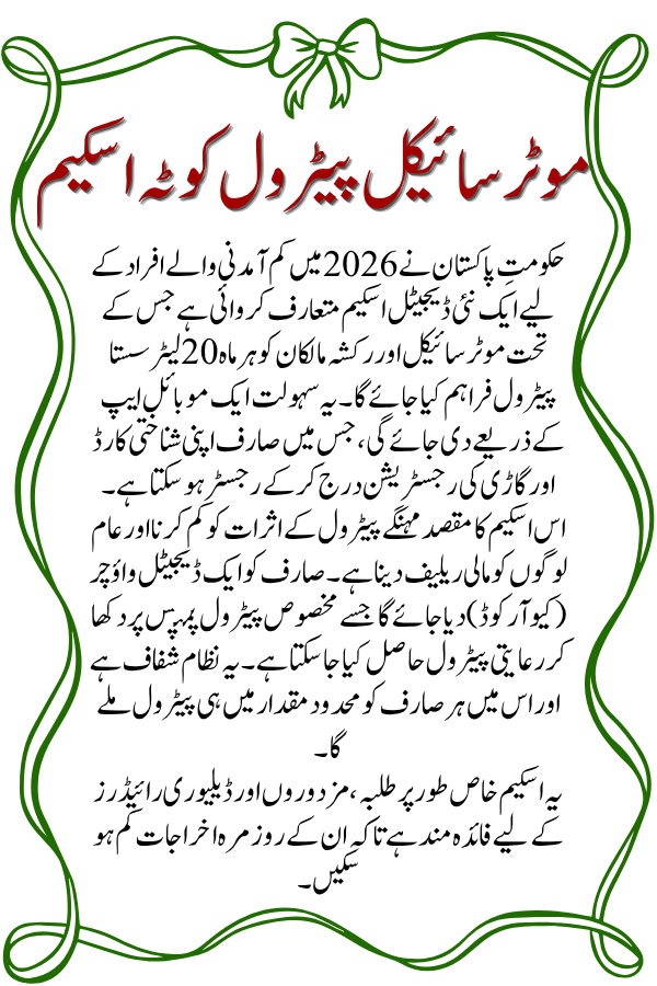 The Petrol Quota for Motorcycles and Low-Income Groups 2026 is a landmark digital initiative that uses technology to provide direct financial relief to the public. By offering a 20-litre monthly quota of subsidized petrol through a transparent app-based system, the government aims to protect low-income riders from fluctuations in global fuel prices.