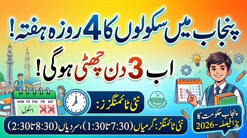 The Punjab Government has announced a significant change in the education system by introducing a 4-day school week for all schools in 2026. This new policy aims to improve student learning outcomes, reduce academic stress, and modernize school schedules across Punjab. Both government and private schools will follow revised timings to ensure better learning efficiency and student well-being. In this guide, we provide complete information on Punjab school timings 2026, seasonal schedules, and preparation tips for students and parents.